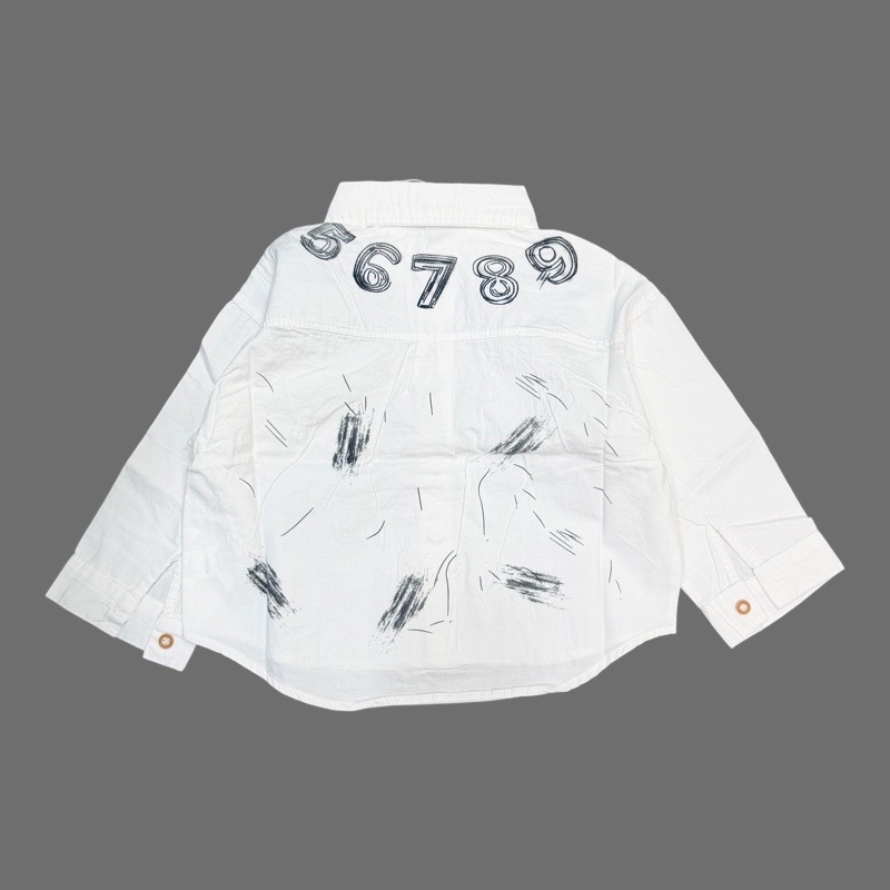 Imported kids cotton shirt with trendy abstract print design. Soft & breathable fabric for all-day comfort. Stylish casual wear, perfect for daily outings & parties.